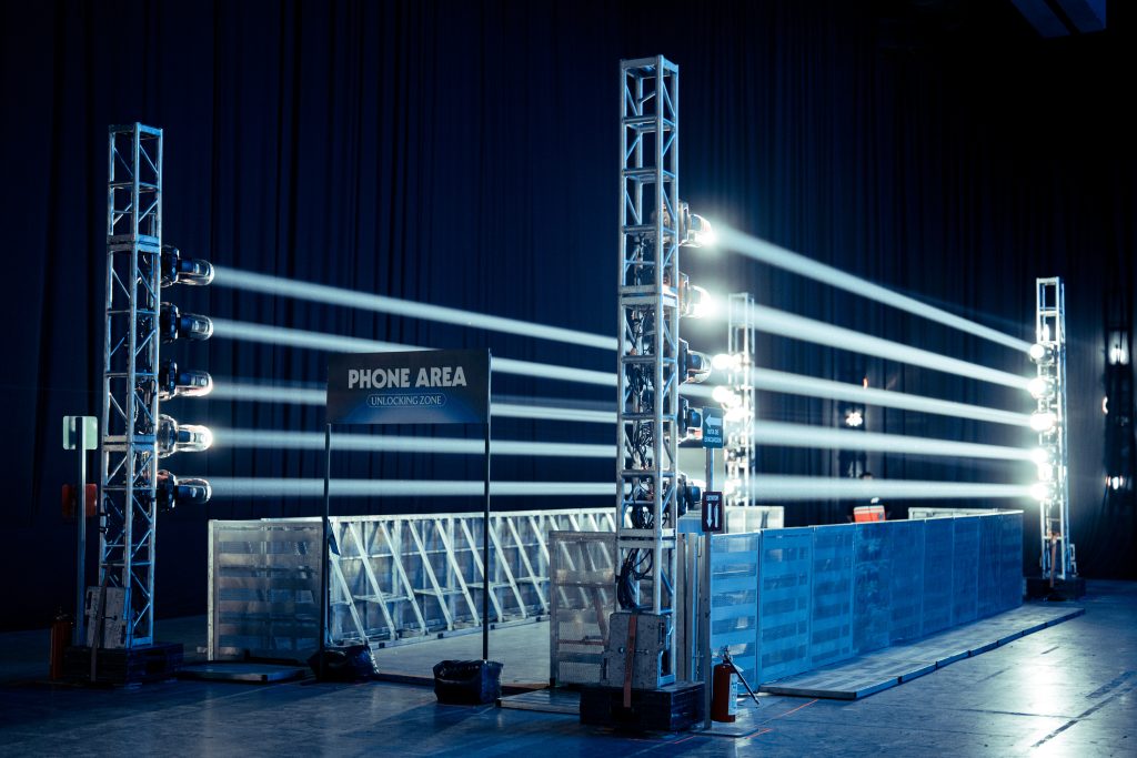 Audience members placed their devices into secure pouches, which were then locked and worn on the body using straps supplied by Phone Locker®. This approach ensured: